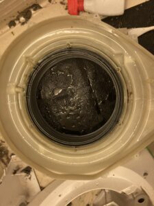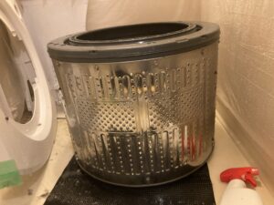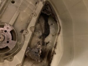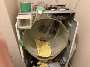 業者の中には、ドラムを外さずに手前から届く範囲だけを洗浄するところも少なくありません。しかし、今回のようにドラムの裏側に根本的な原因がある場合、外さずに作業をしても症状は改善されません。状況によっては、ドラムまで外さないと故障の原因がわからないことも多いです。