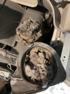 ご自身でフィルターの奥を掃除される時は埃が溜まる前に優しくブラシなどで掃除するのがコツです。その際はブラシを落とされないようにご注意ください。埃については、実は多少は内部に落としても問題ございません。そのまま排水と一緒に流れていきます。ただし、大きな埃の塊になった後だと、排水経路に詰まってしまうことが多々あるので、その点においても”埃が溜まる前に優しく”掃除するといいかと思います。