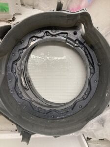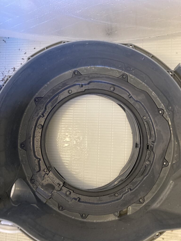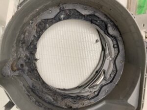 乾燥のための温風が循環するルートが途切れていたため、埃がフィルターに届く前に洗濯機内部へ漏れ出し、温風も逃げてしまっていたのです。
